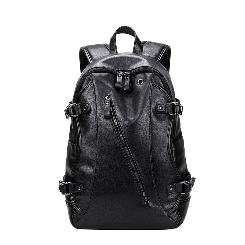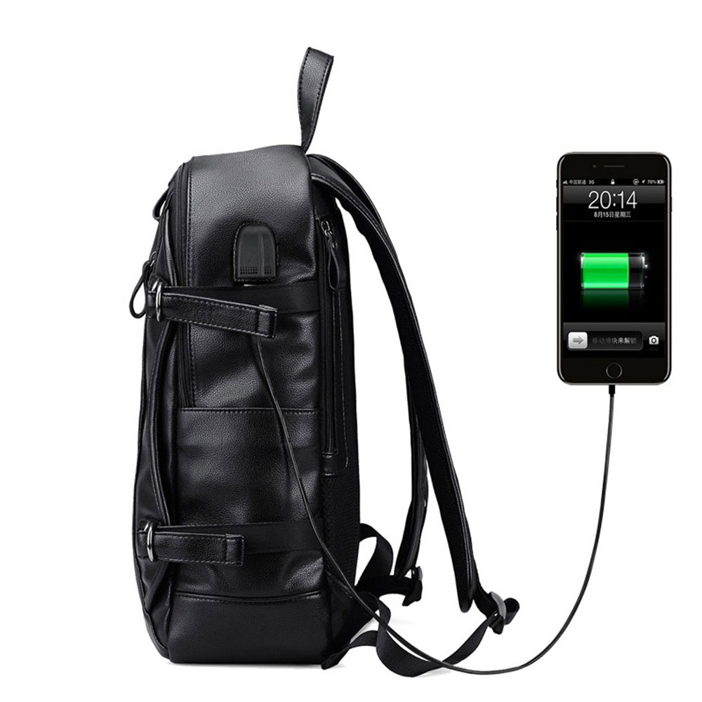 This tech-ready synthetic leather backpack is engineered for the modern urbanite who requires seamless integration between their gear and their digital life. Featuring a sleek, contoured design in a textured black finish, this bag offers a professional look with advanced functional utility.